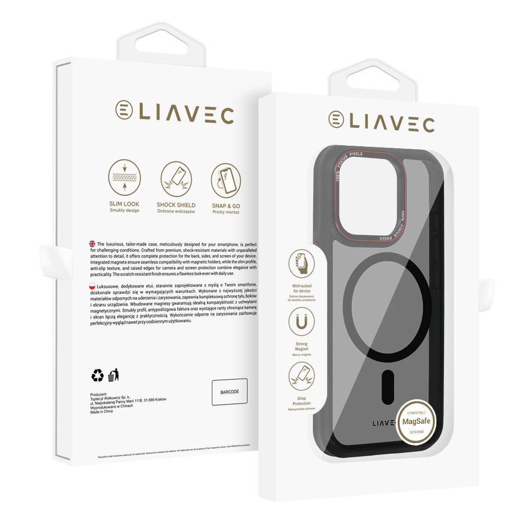 Objavte dokonalú kombináciu štýlu a funkčnosti s naším zadným krytom Liavec Hybrid Smoke MagSafe. Tento kryt je navrhnutý tak, aby nielen chránil váš iPhone 15 Pro Max, ale aj mu dodal šmrnc a eleganciu. S jeho jemným dymovým nádychom a matnými čiernymi TPU stranami sa stáva ideálnym doplnkom pre každého, kto si potrpí na detail.