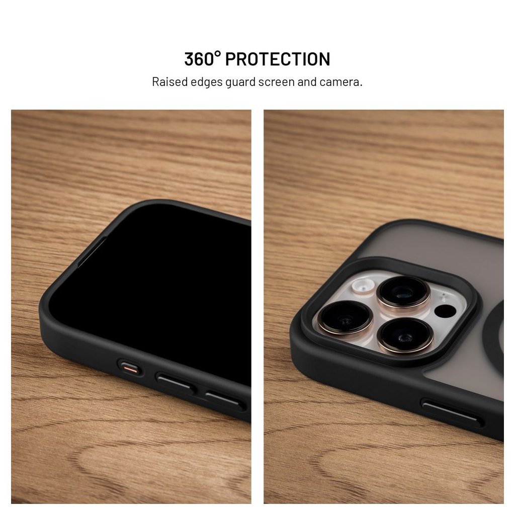 Nielenže kryt vyzerá skvele, ale tiež poskytuje **360° ochranu** vášho telefónu. Vyrobený z odolného polykarbonátu a pružných TPU bokov, kryt spoľahlivo chráni váš iPhone pred nárazmi, poškriabaním a nečistotami. Zvýšené okraje na prednej strane krytu chránia displej pri položení telefónu displejom nadol, zatiaľ čo mierne vyvýšené rohy na zadnej strane zaisťujú, že sa kryt nedotýka priamo povrchu, čím efektívne predchádza poškriabaniu zadnej strany aj šošoviek fotoaparátu.Parametre produktu: