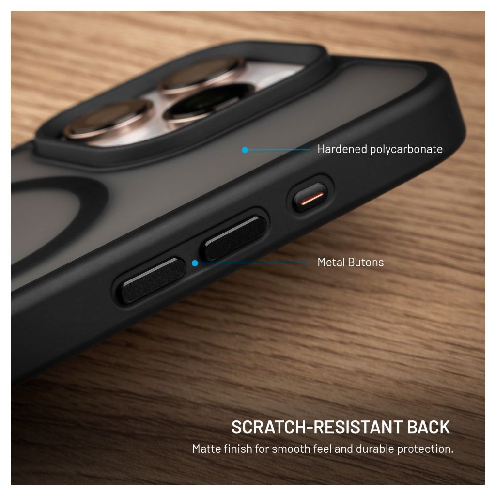 Kryt FIXED MagMisty sa pýši matným vzhľadom s dymovým efektom, ktorý dodáva vášmu telefónu moderný a sofistikovaný vzhľad. Jeho elegantné línie a precízne spracované kovové krytky tlačidiel zaručujú, že váš iPhone bude vyzerať skvele za všetkých okolností. Či už idete na stretnutie, alebo sa chystáte na večernú akciu, tento kryt vás nikdy nesklame!Bezpečnosť na prvom mieste