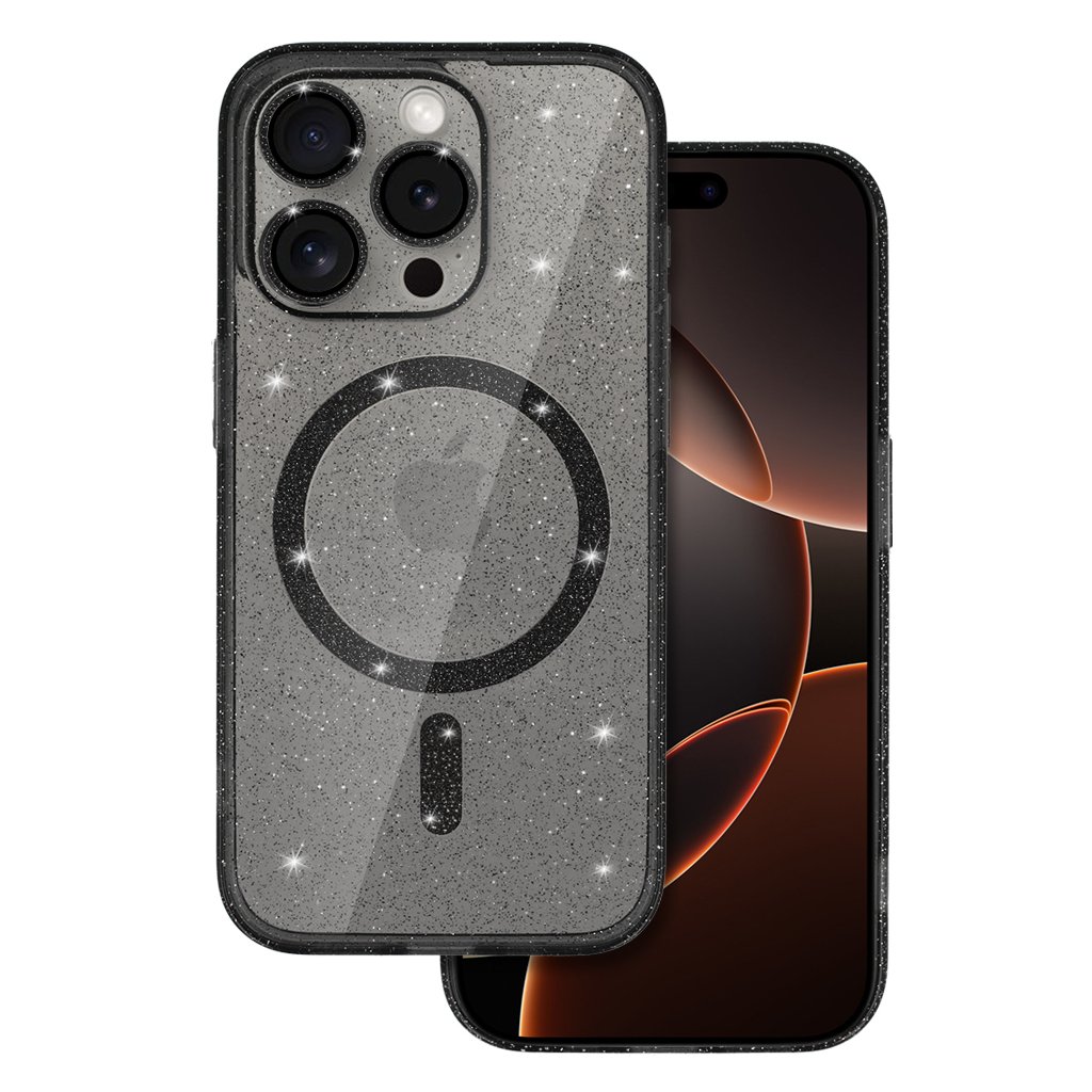 Zadný kryt Glitter Magsafe pre iPhone 16 Pro čierny priehľadný