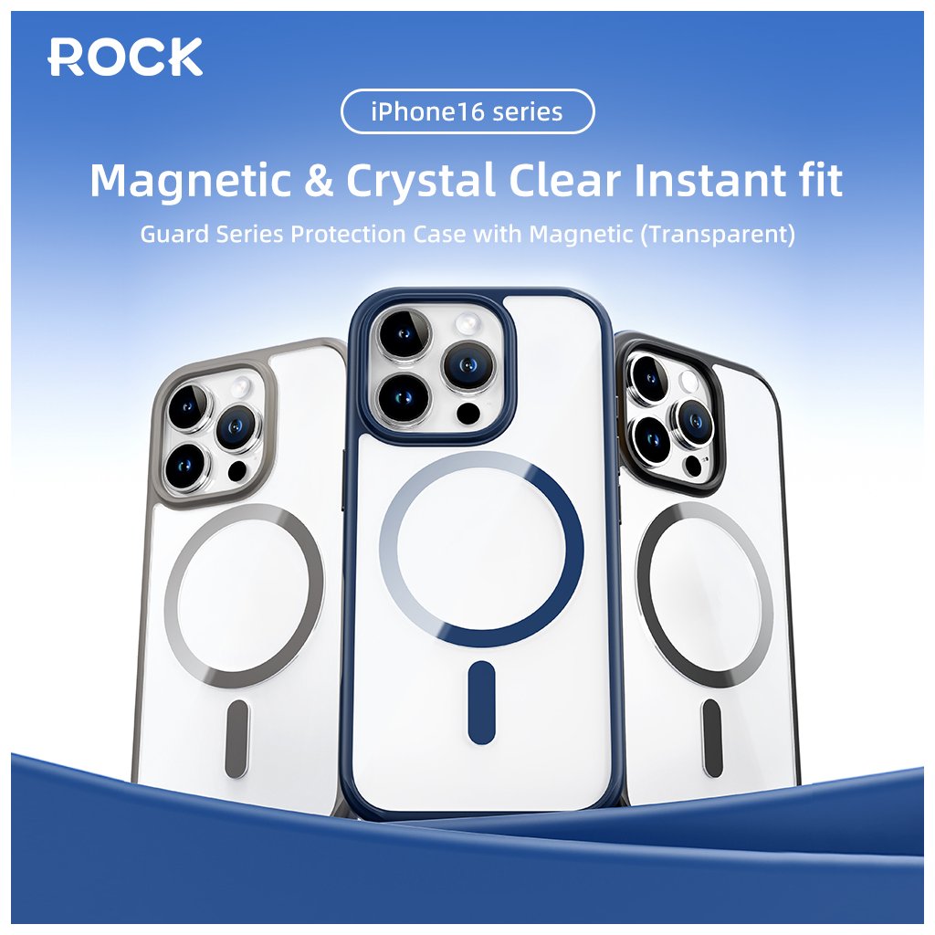Zadný kryt Rock Guard Series Magnetic pre iPhone 16 clear-blackZadný kryt Rock Guard Series Magnetic pre iPhone 16 clear-black