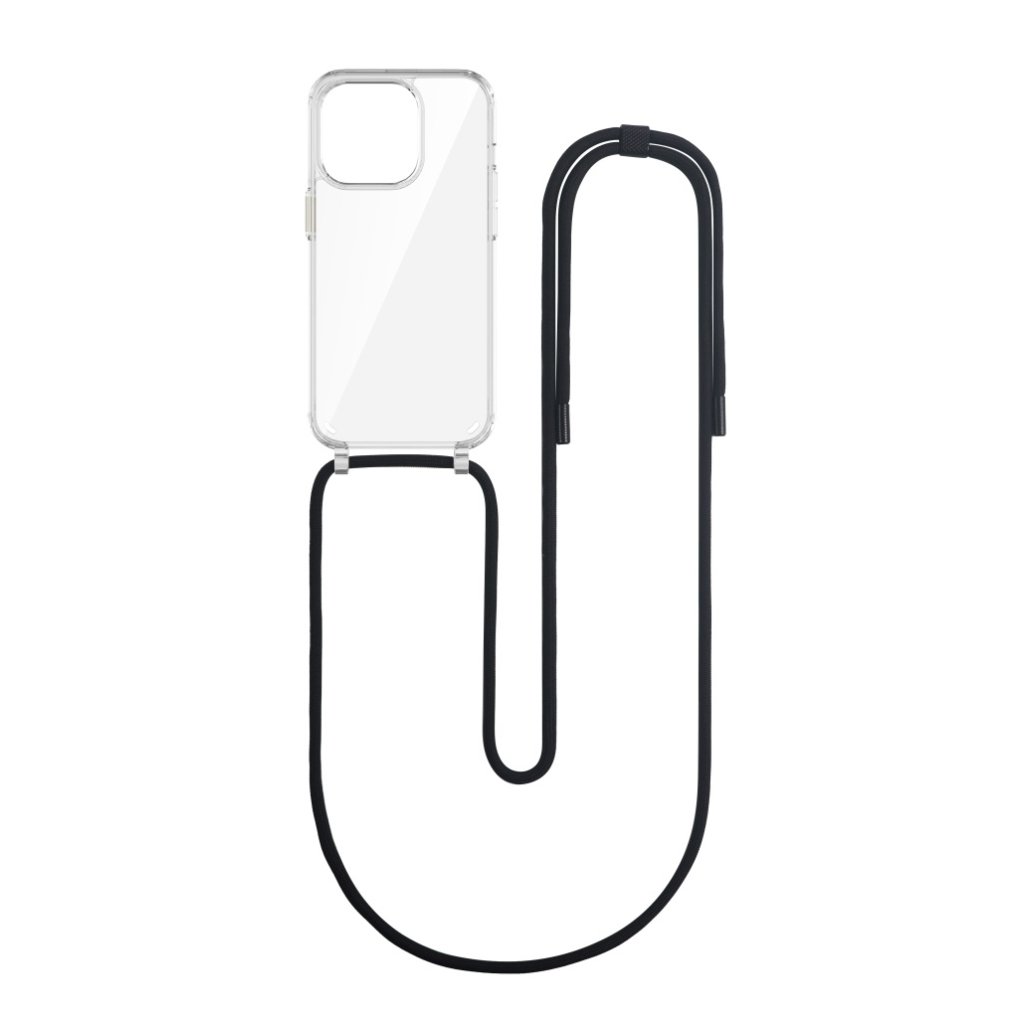 Zadný kryt Simple na iPhone 15 Pro s čiernou šnúrkou priehľadný