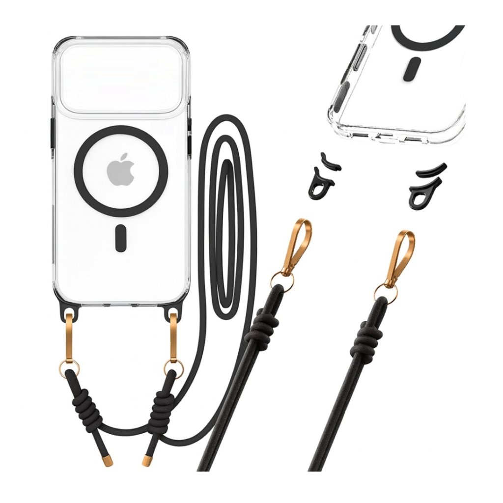 Zadný kryt Tel Protect Strap Clear pre iPhone 17 Pro – Čierna elegancia s praktickým dizajnom