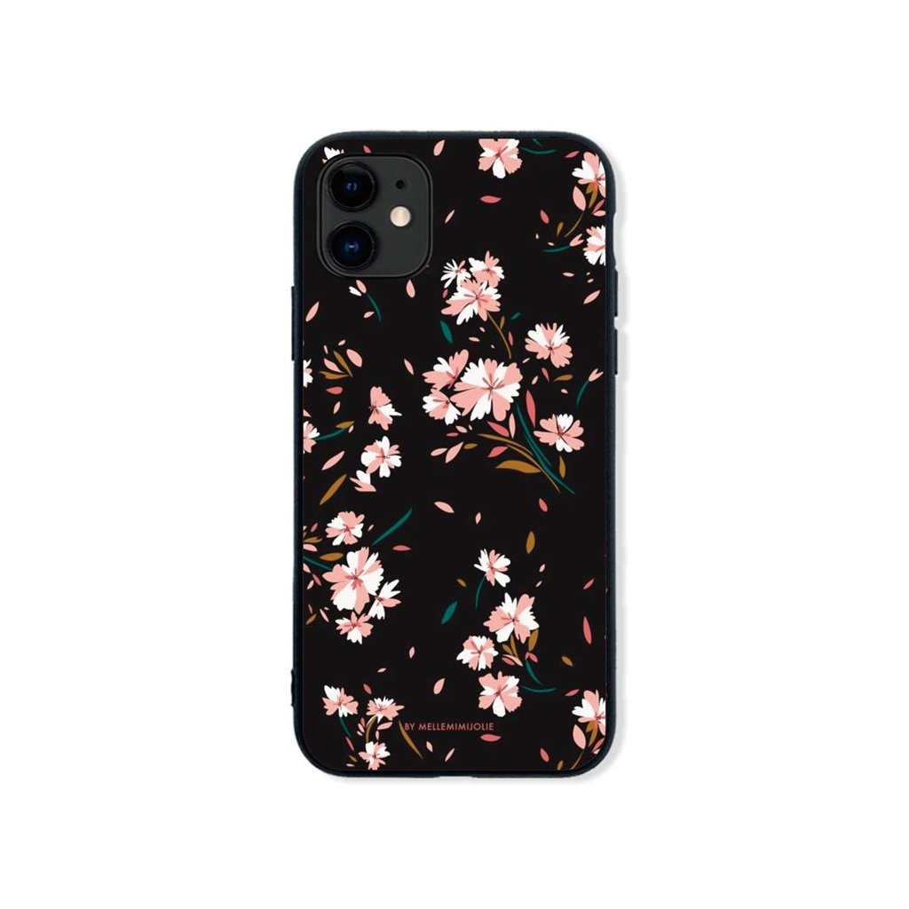 Luxusný zadný kryt pre iPhone 11 v kombinácii ohebného plastu a tvrdeného skla s motívom čerešňových kvetov. Elegantný dizajn a vysoká ochrana v jednom.