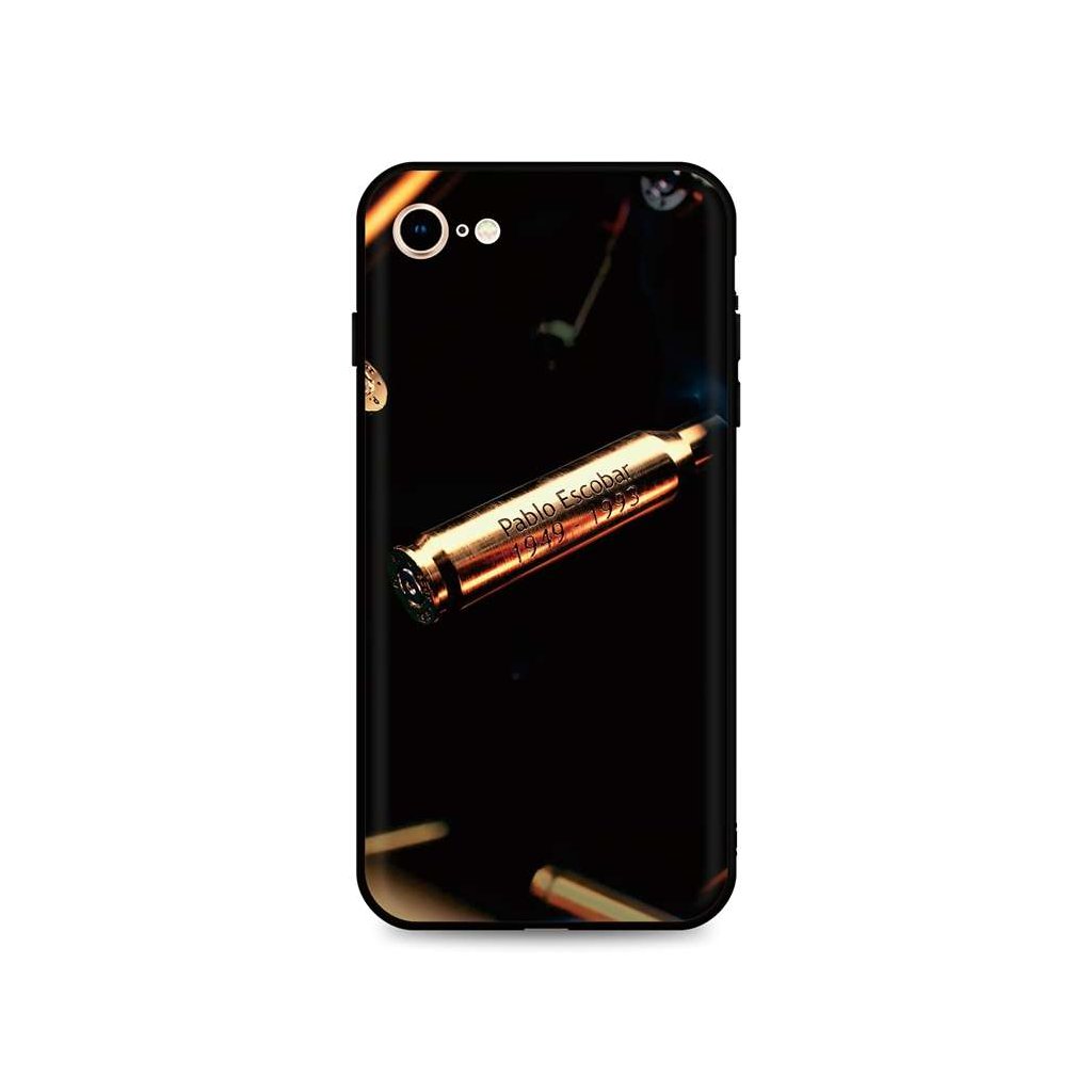 Originálny silikónový kryt na mobil iPhone SE 2020 s motívom Pablo Escobar Bullet zo série DARK. Tmavé pružné púzdro s presným spracovaním pre spoľahlivú ochranu telefónu.