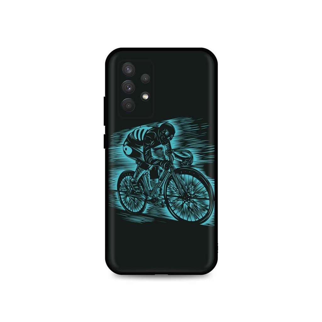 Originálny zadný silikónový kryt z kolekcie DARK, určený pre Samsung Galaxy A32. Pružné, tmavé púzdro s motívom jazdca na bicykli, precízne spracovanie a zvýšená ochrana telefónu.