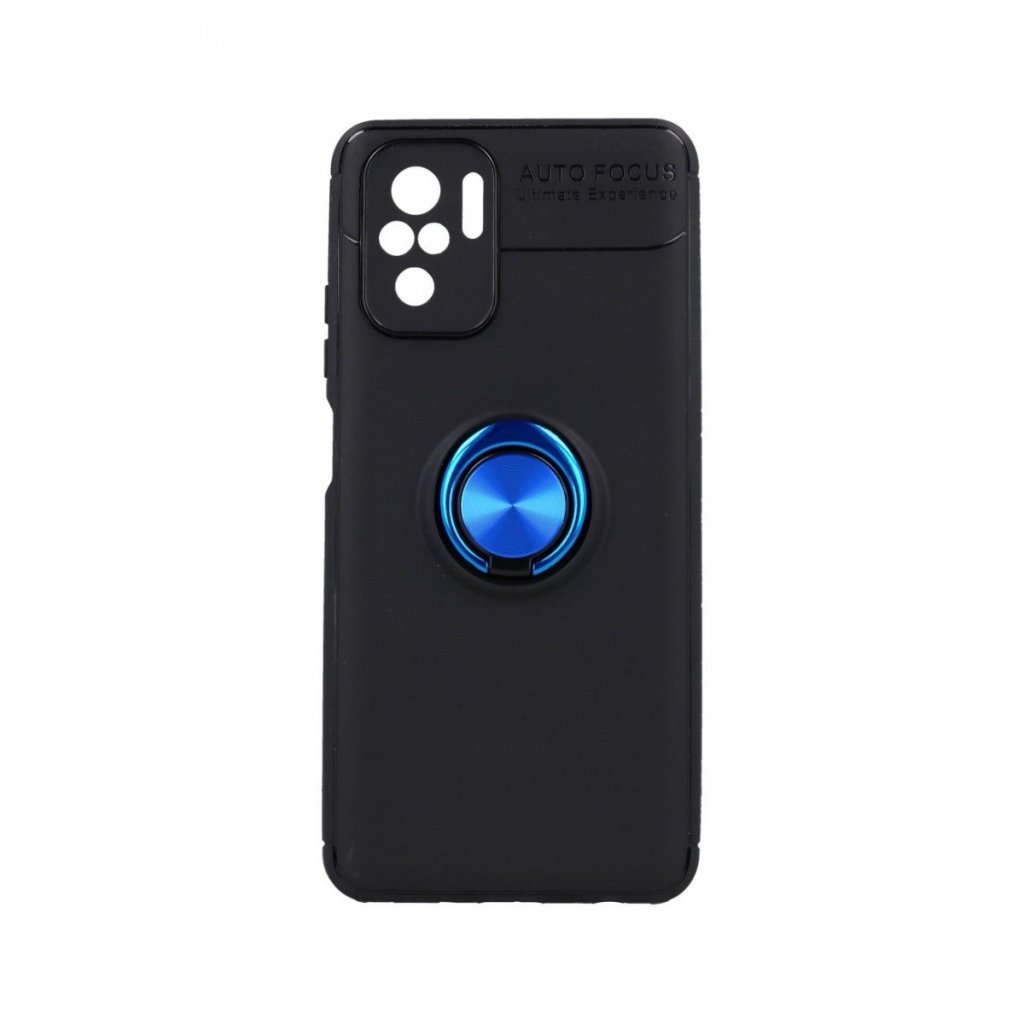 Zadný silikónový kryt na Xiaomi Redmi Note 10 - Čierny s modrým prsteňom